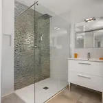 Modern comforts include ironing facilities and air conditioning, enhanced by a TV set. This apartment is also furnished with a sofa. The bathrooms offer a walk-in shower and a separate toilet. Furthermore, a hair dryer and bath sheets is available.